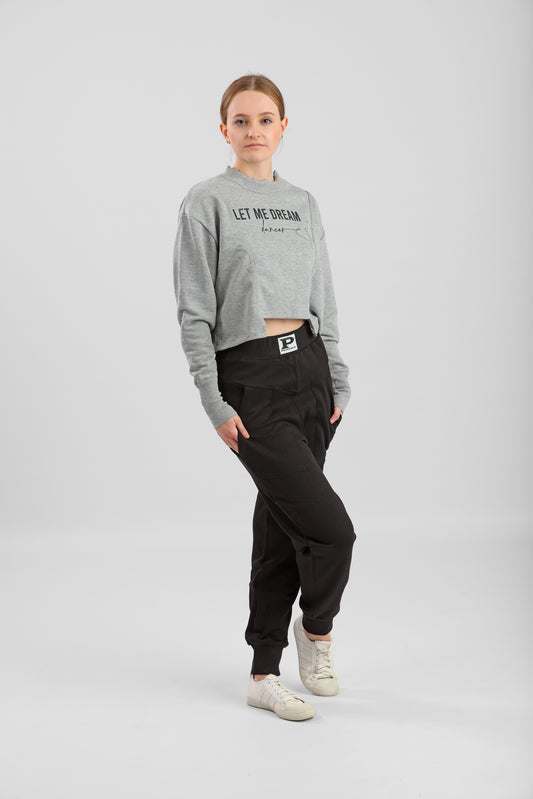 Crop top danse noir PriDance – Tissu toucher viscose, imprimé "LET'S DREAM" rose (186)